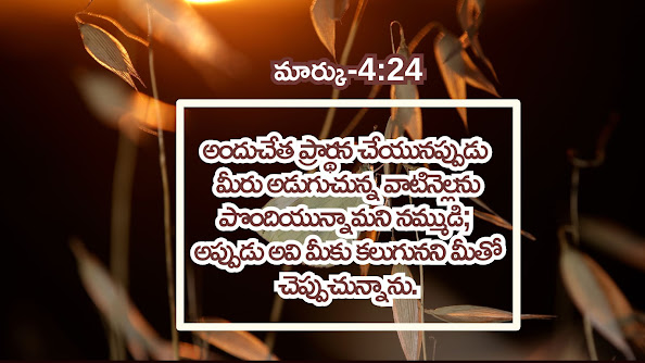ఫిలిప్పీ-4:6 "దేనినిగూర్చియు చింతపడకుడి గాని ప్రతి విషయములోను ప్రార్థన విజ్ఞాపనములచేత కృతజ్ఞతాపూర్వకముగా మీ విన్నపములు దేవునికి తెలియజేయుడి."సాధారణముగా విజ్ఞాపన చేయునపుడు మనలో విశ్వాసాన్ని కూడకట్టుకోవడానికి ఎంతైనా ప్రయత్నిస్తాము,కానీ ఓ సంపూర్ణమైన విజ్ఞాపన లో విశ్వాసము ఎంత ఉంటుందో, కృతజ్ఞత కూడా అంతే ఉండాలి.......మీ విన్నపములు ప్రార్ధన విఙ్ఞాపణలతో కృతజ్ఞతాపూర్వకముగా ఉండాలి.